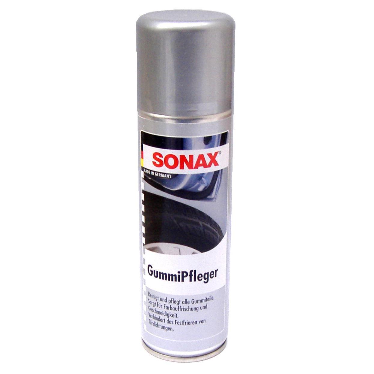 SONAX GummipPfleger reinigt und pflegt alle Gummiteile am Auto und hält sie elastisch. Verlängert die Lebensdauer des Gummis und frischt die Farben auf.